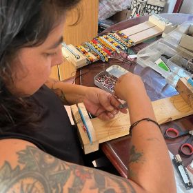 Für diese Gemeinschaften ist Handwerk eine heilige, spirituelle Praxis, die Herz und Verstand gleichermaßen bildet. Die handgewebten Mochilas von Ana und Martina (Arhuaco) sollen ihre Träger*innen schützen, nähren und ins Gleichgewicht bringen – sie tragen eine starke weibliche Energie in sich. Der farbenfrohe Perlenschmuck von Marcela, Jaquelina und Adriana (Kamentsa und Siona) ist von ihren zeremoniellen Begegnungen inspiriert und soll Licht und Freude in den Alltag bringen.