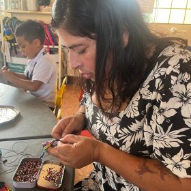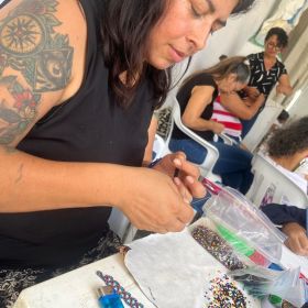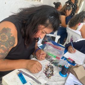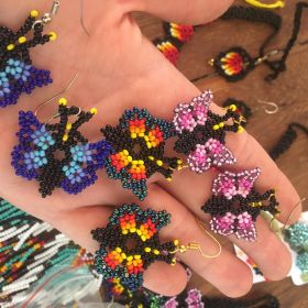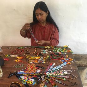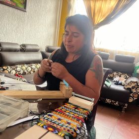 The vibrant beadwork by Marcela, Jaquelina, and Adriana (Kamentsa and Siona) is inspired by ancestral ceremonies and intended to bring light and joy into everyday life.